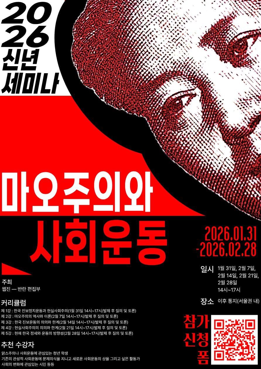 웹진 반란에서 2026 신년세미나 <마오주의와 사회운동>을 개최합니다.